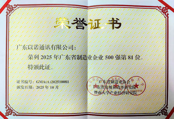 近日,在“2025年廣東省制造業(yè)500強(qiáng)企業(yè)峰會(huì)”上,福日電子成員企業(yè)以諾通訊憑借堅(jiān)實(shí)的產(chǎn)業(yè)基礎(chǔ)與穩(wěn)健增長的業(yè)績表現(xiàn),成功入選“2025年廣東省制造業(yè)企業(yè)500強(qiáng)”,位列第81位,較去年提升14位,展現(xiàn)出公司在高質(zhì)量發(fā)展道路上的強(qiáng)勁勢(shì)頭與日益突出的行業(yè)影響力。